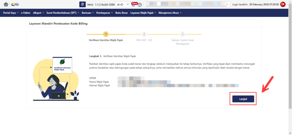 - Pastikan NIK / NPWP , Nama dan alamat yang muncul sudah sesuai dengan akun kita