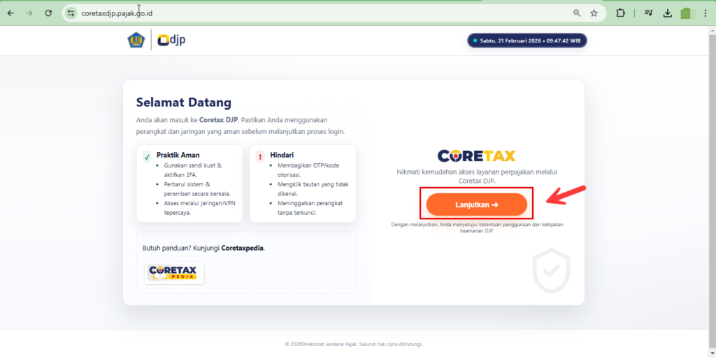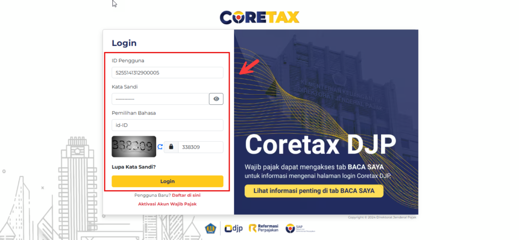 1. Login ke Coretax DJP