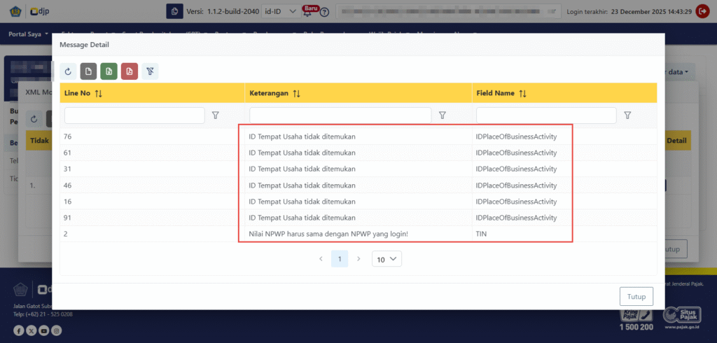 Dari hasil cek tersebut akan diketahui eror tersebut terkait dengan data apa, semisal muncul error tentang ID Tempat Usaha tidak ditemukan berarti kita cek IDTKU yang terinput apakah ada salah input? atau jika muncul error Nilai NPWP harus sama dengan NPWP yang login! maka kita cek isian NPWP pemotong pastikan sesuai dengan login yang kita gunakan. intinya kita harus memastikan data yang kita isikan pada file excel format impor tersebut sudah benar.