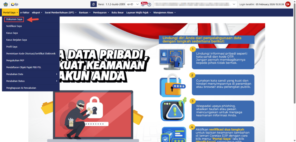 Setelah berhasil masuk, cari menu “Portal Saya” atau “Dokumen Saya”. Di sinilah semua dokumen elektronik yang terkait dengan akun Anda dikumpulkan—termasuk bukti potong.