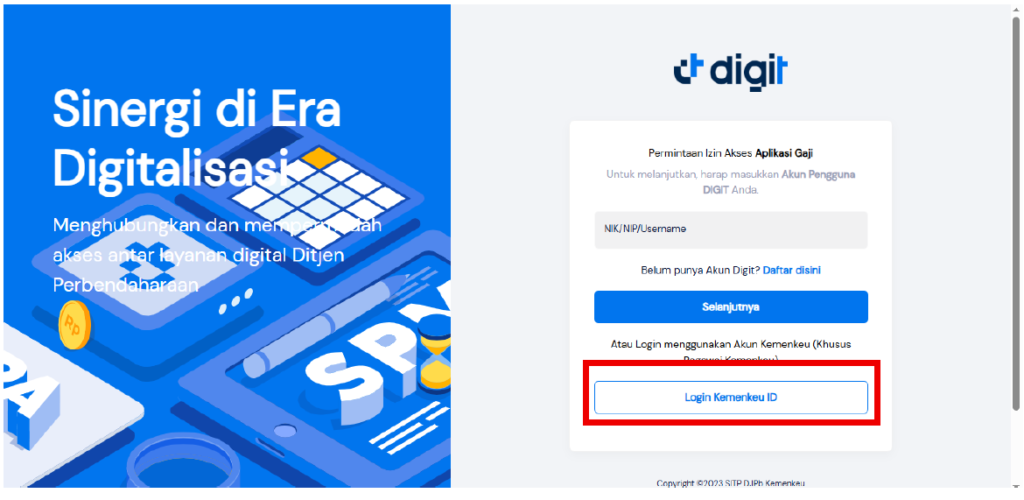 Buka https://gaji.kemenkeu.go.id dan silahkan masuk menggunakan Kemenkeu ID Anda.