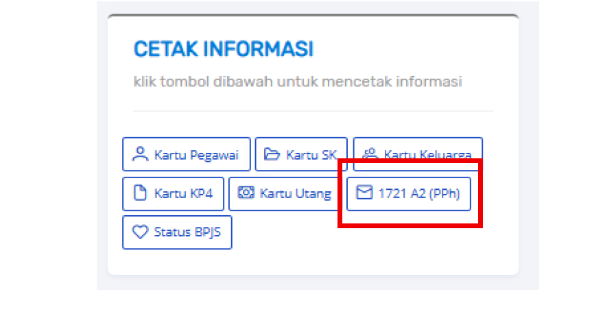 Di halaman utama, cari panel Cetak Informasi (posisi kanan bawah). Klik tombol “1721 A2 (PPh)