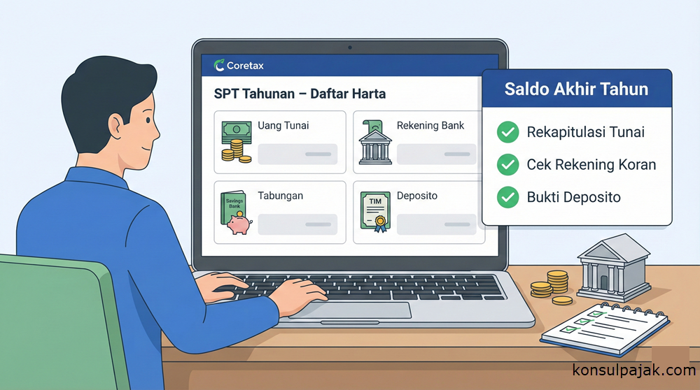Melaporkan harta kas dan setara kas dengan benar di SPT Tahunan PPh Orang Pribadi sering menjadi bagian yang paling mengkhawatirkan bagi banyak Wajib Pajak (WP). Perubahan sistem pelaporan yang kini harus dilakukan lewat Coretax DJP membuat proses ini terlihat jauh lebih detil, tetapi sebenarnya jika tahu caranya langkahnya bisa sangat terstruktur dan mudah diikuti.